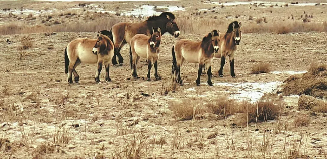 Endangered Przewalski's horses are seen in the Dunhuang Xihu Nature Reserve, Gansu province. WU XINGDONG/FOR CHINA DAILY